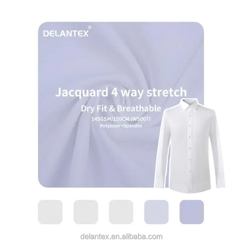 Delantex 100D 96Polyester 4spandex 150D Jacquard Polyester Spandex 4 Way Stretch Shirting Fabric for Uniform